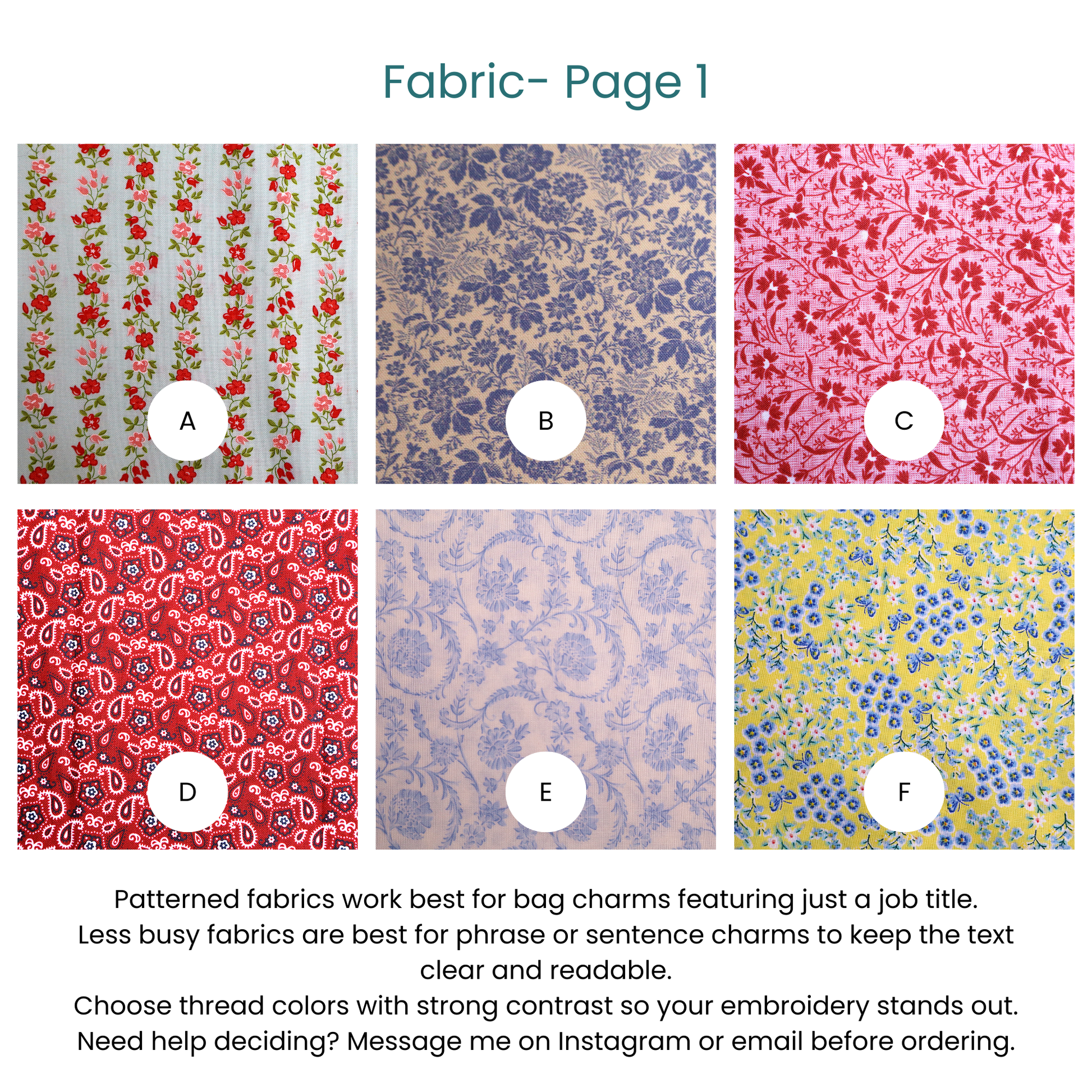 Customize your charm by choosing your fabric, thread color, and one of five embroidered icons to sit at the bottom of the heart.