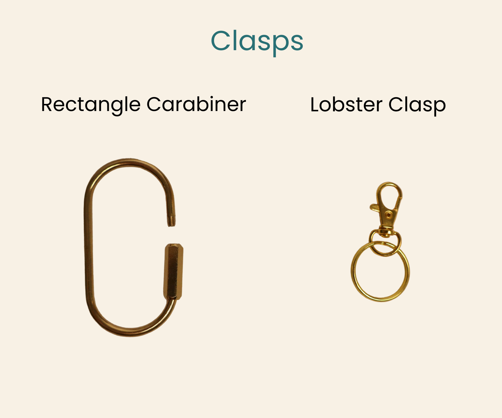 Choose from three gold clasp styles for easy attachment to your bag.